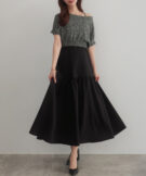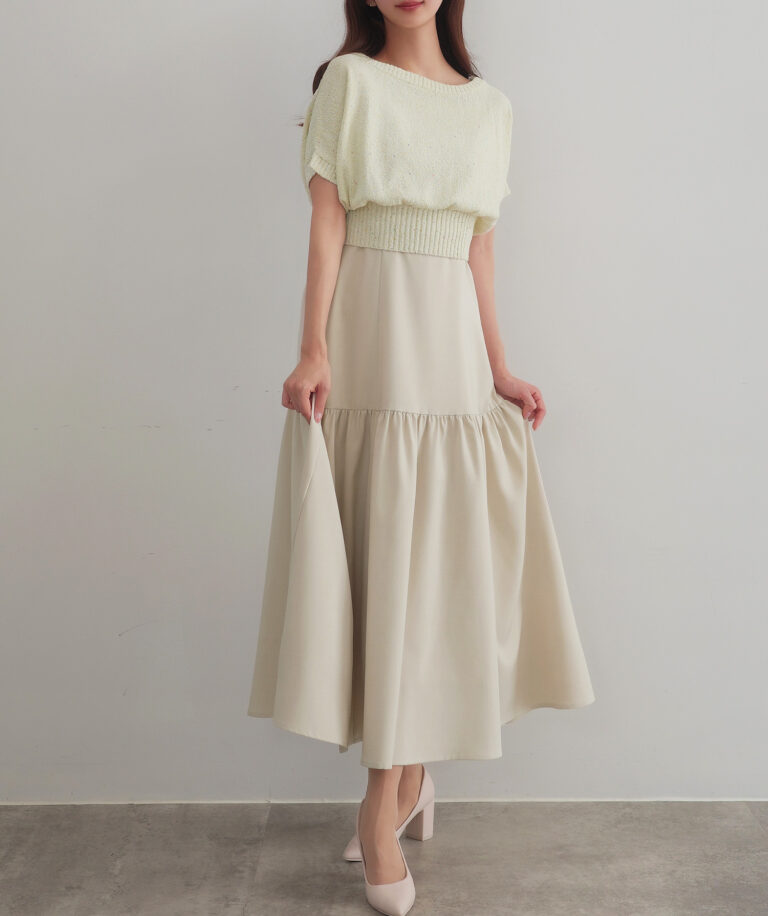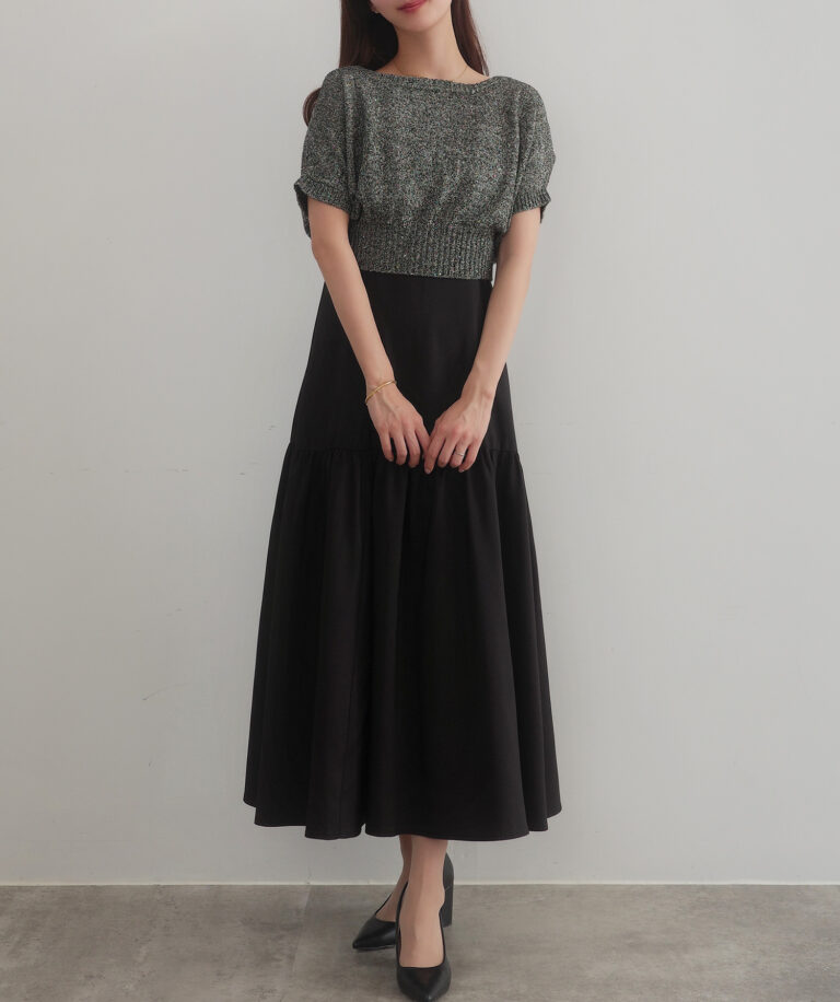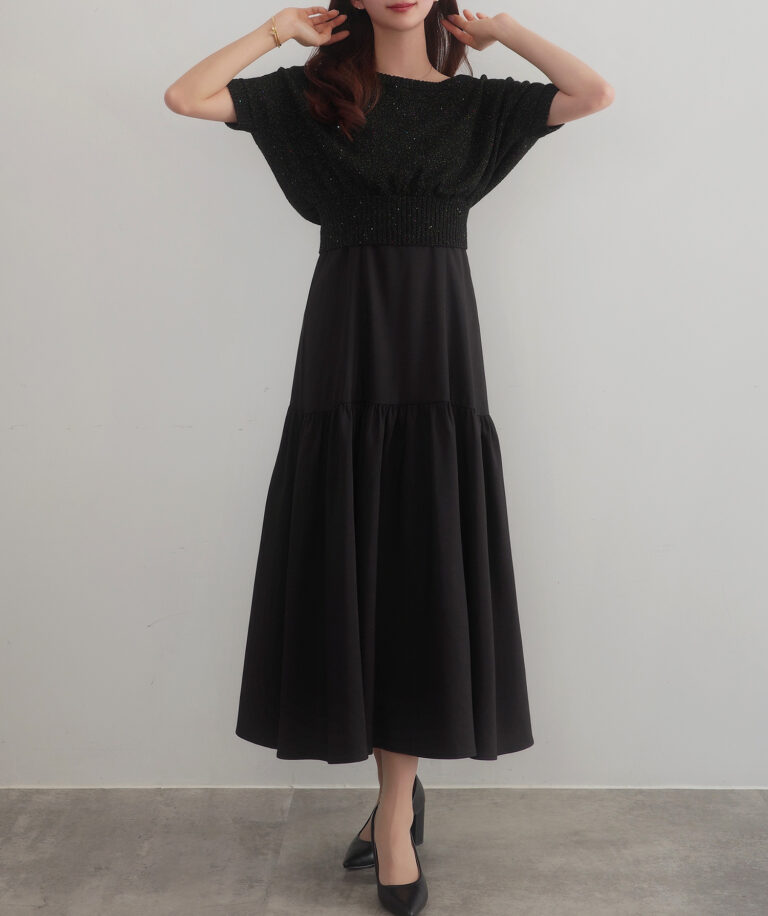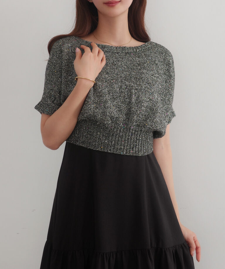 【021】スパンコールショートニット+ティアードキャミワンピース set