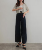 ウエストラインを高い位置で切り替えることで脚長見え&着やせ効果も◎