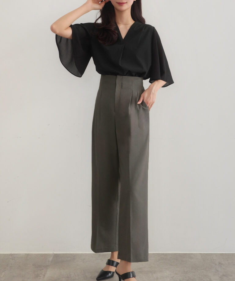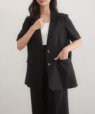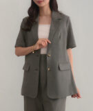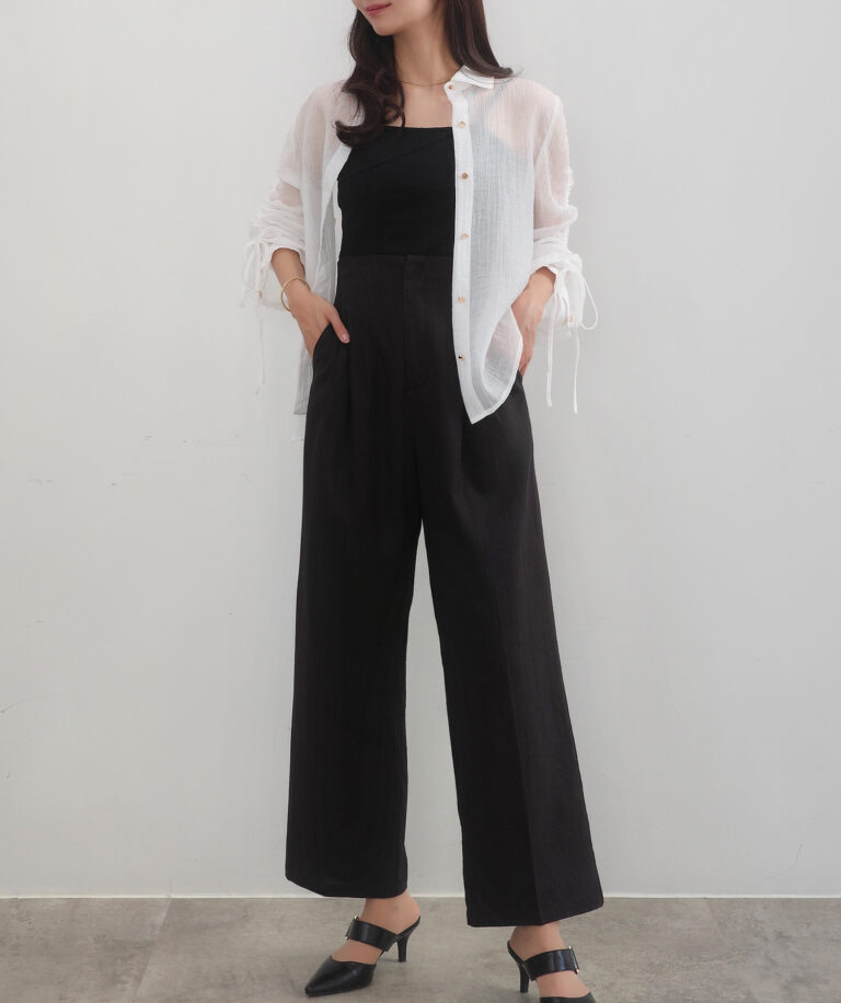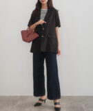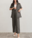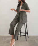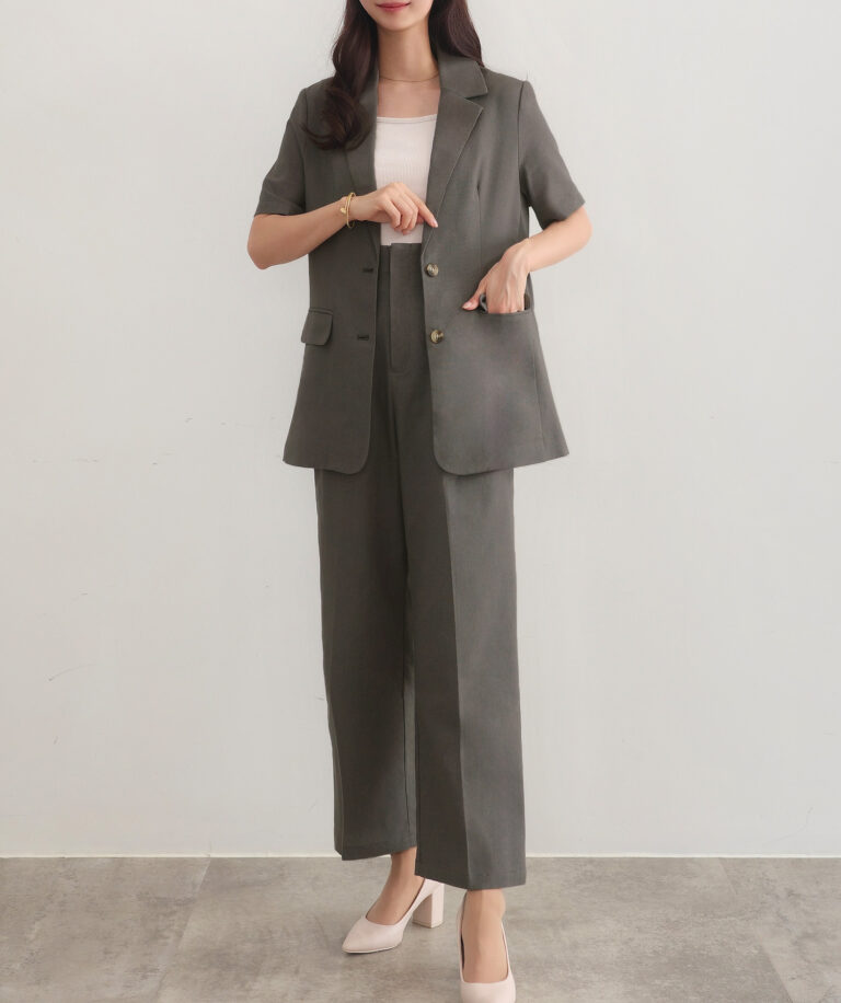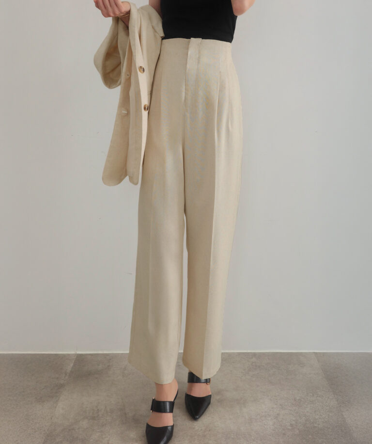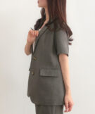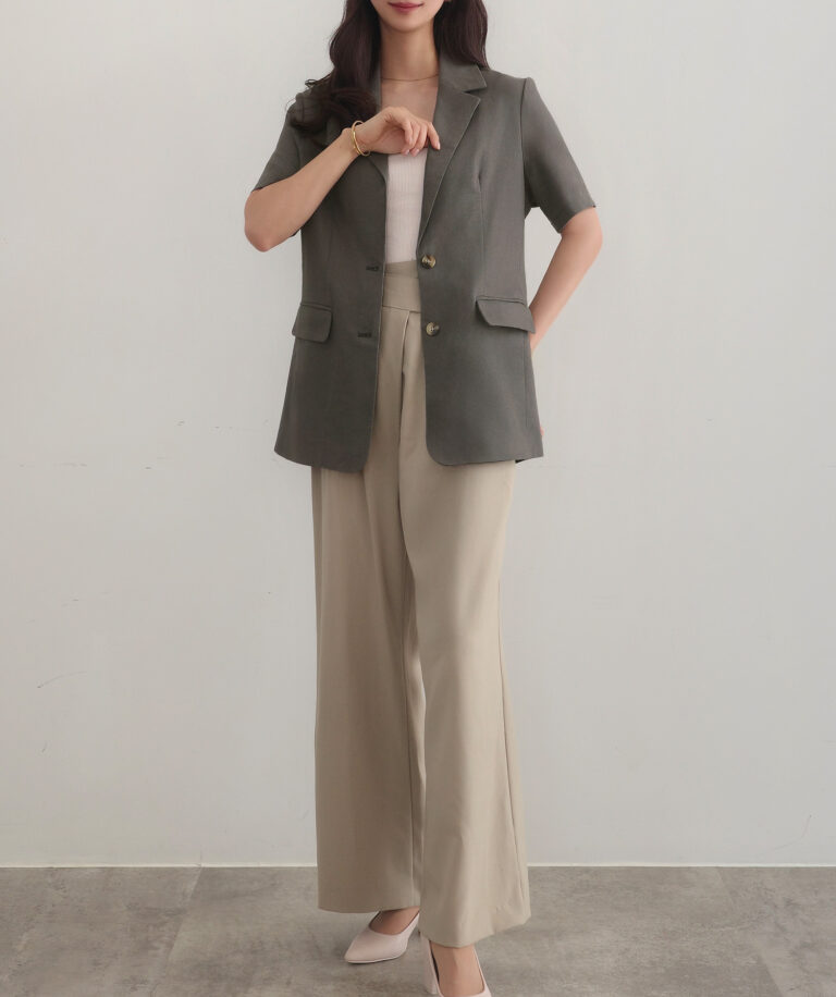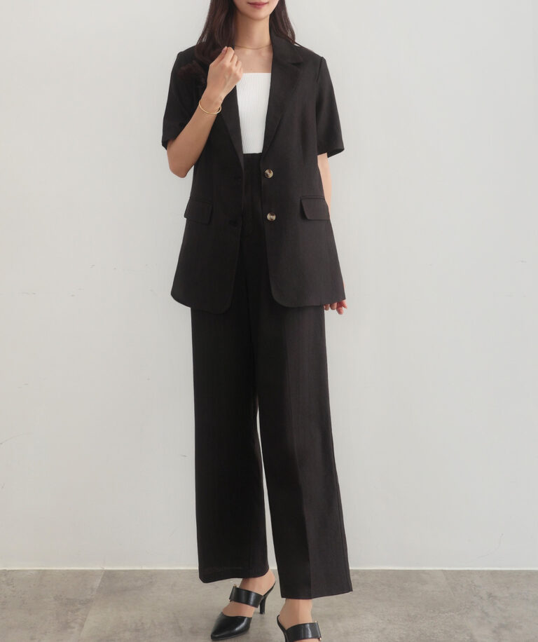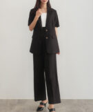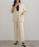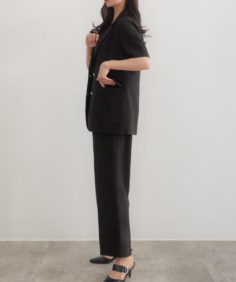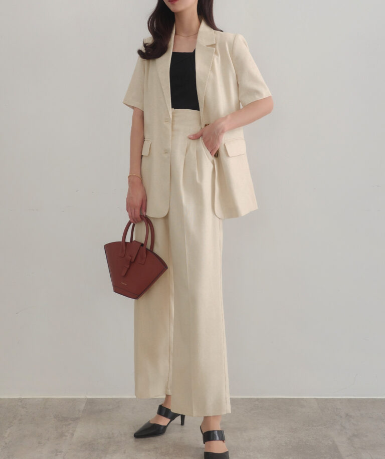 【032】リネン混半袖ジャケット+ハイウエストパンツset