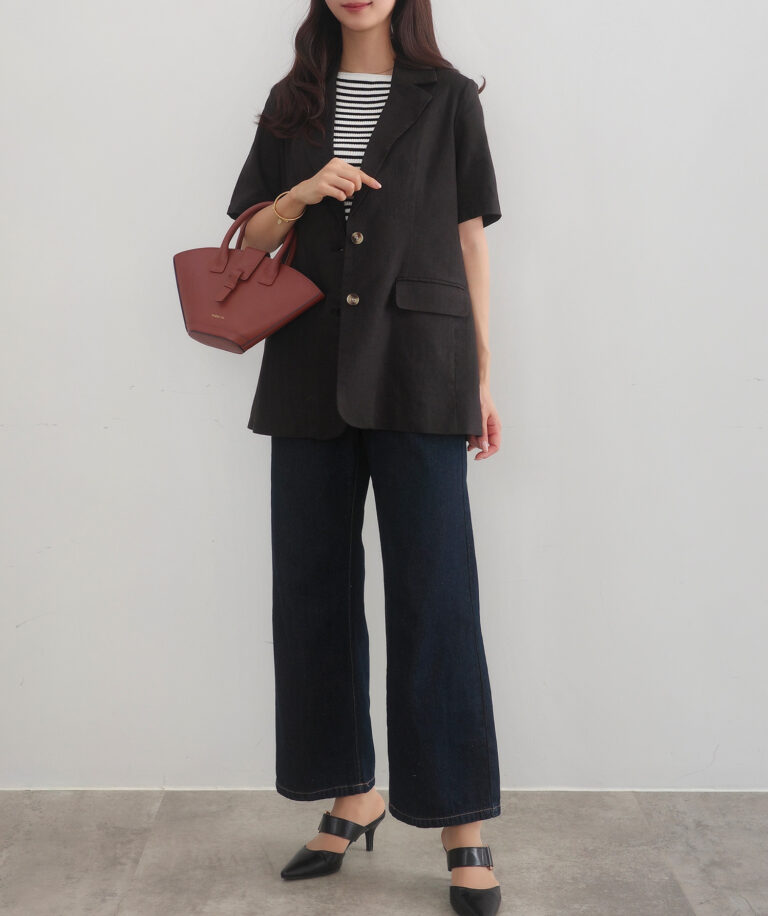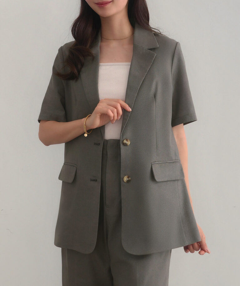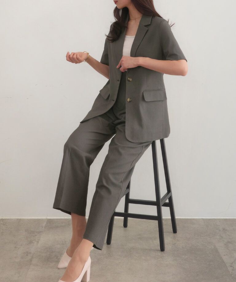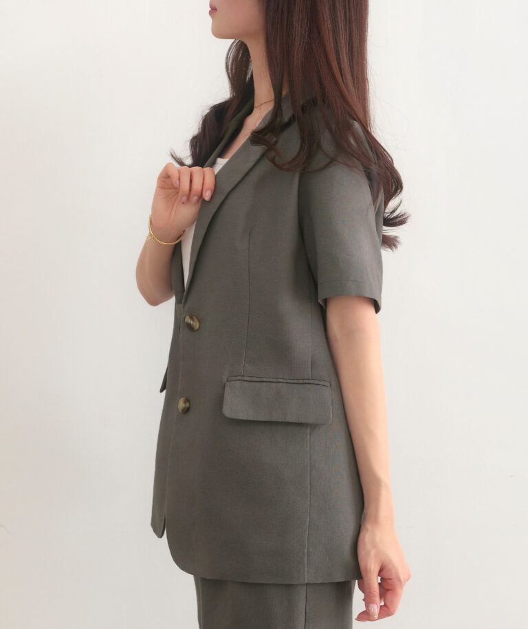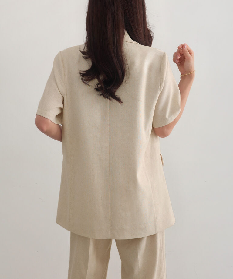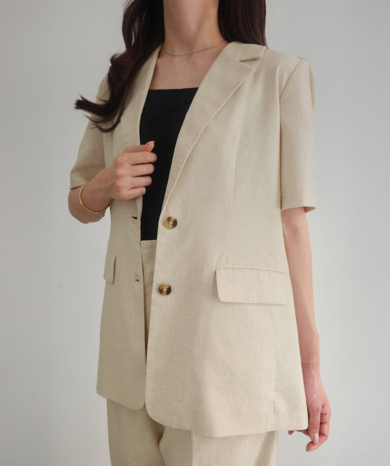 カジュアルも大人っぽさも兼ね備えたリネン混の半袖ジャケット+パンツSET。