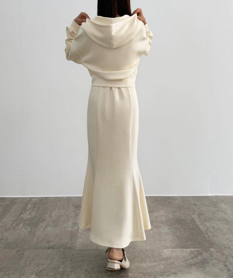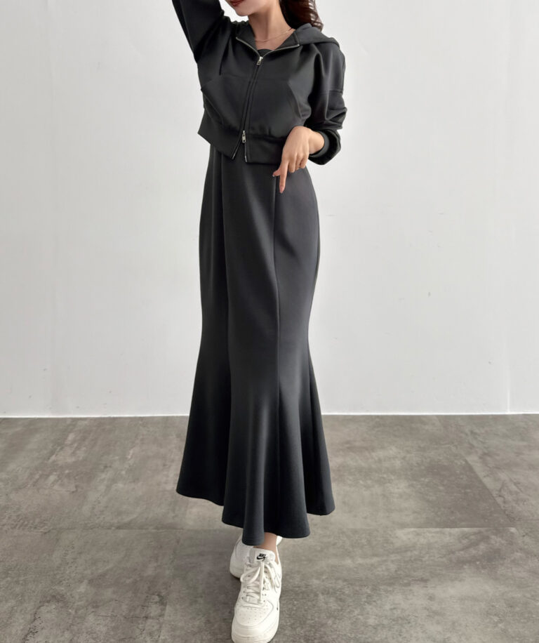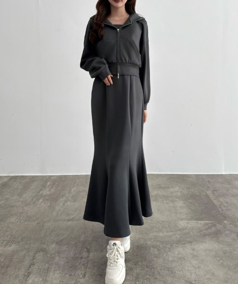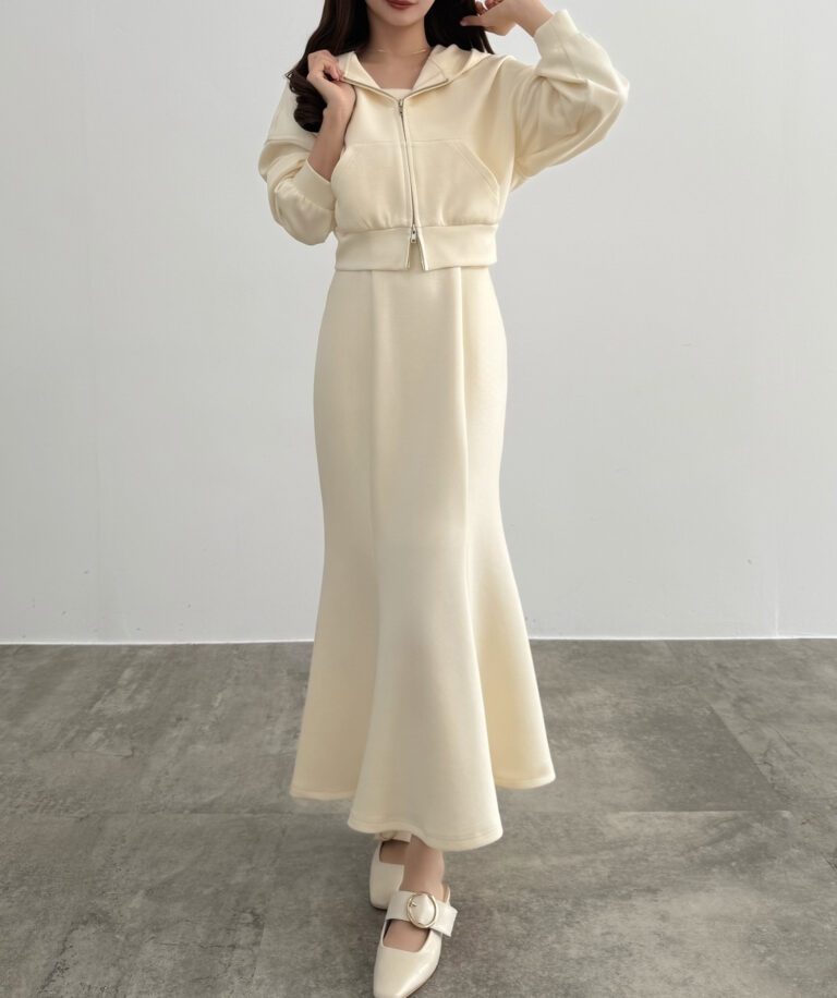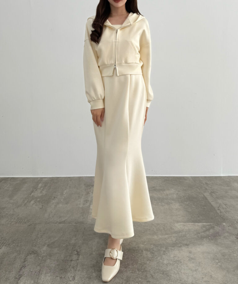 ショート丈パーカー&マーメイドキャミワンピのセットアップが登場。