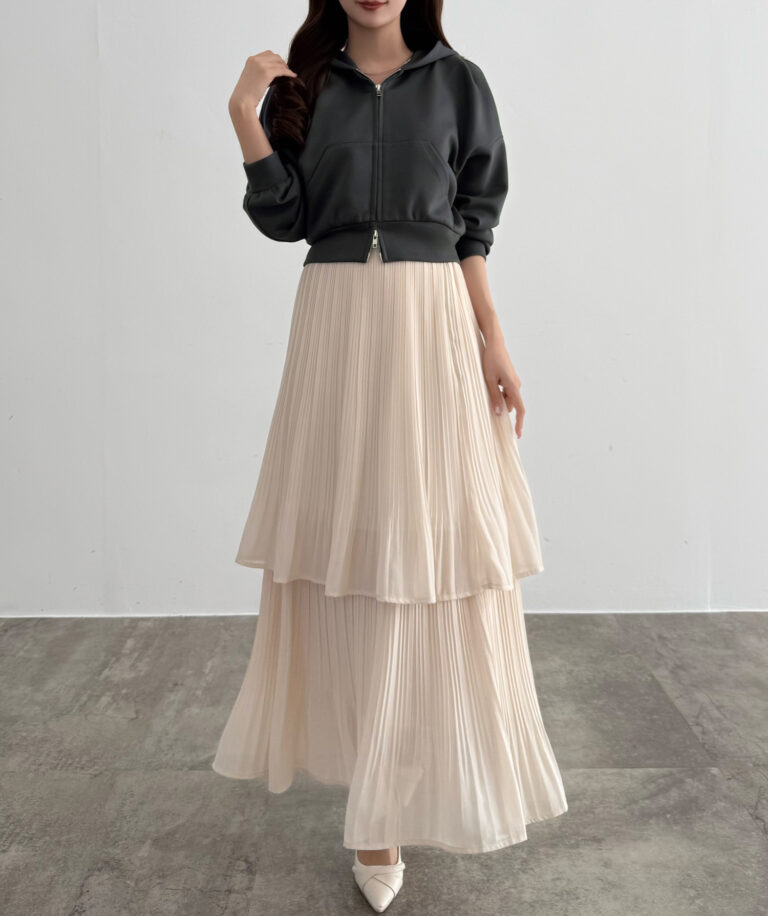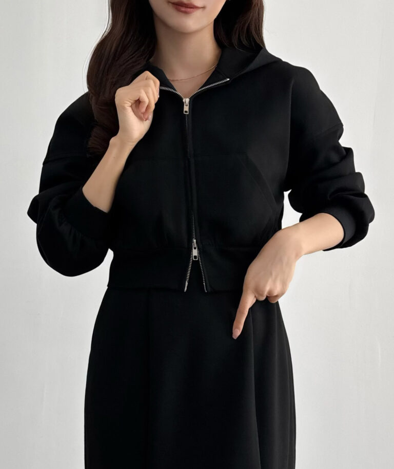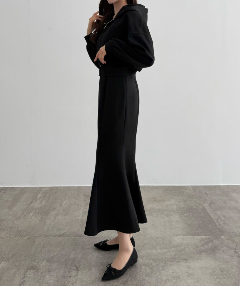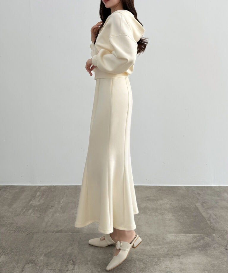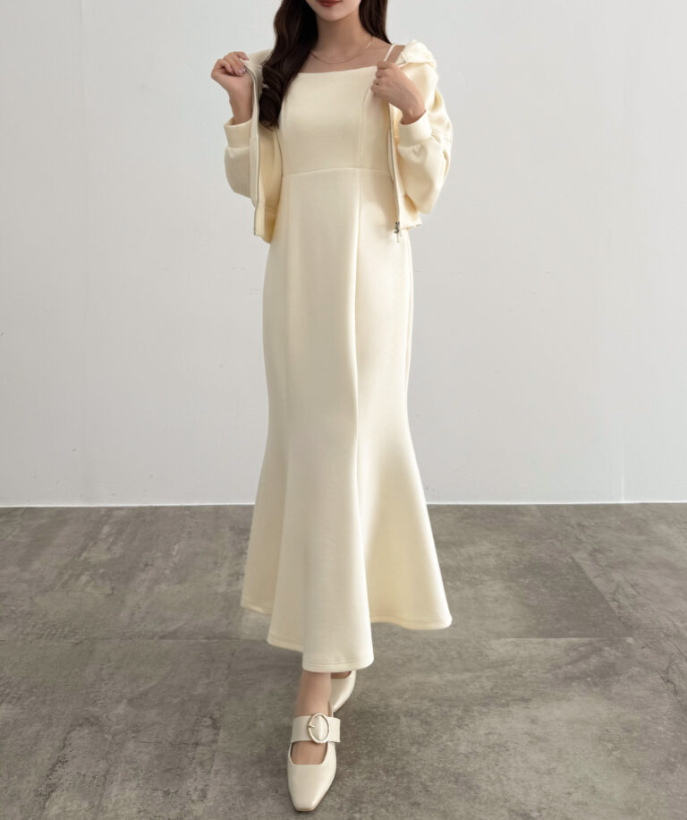 ショート丈パーカー&マーメイドキャミワンピのセットアップが登場。
