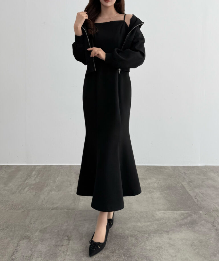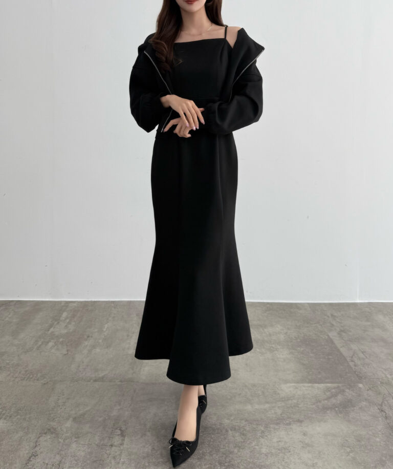 【086】ショートパーカー+マーメイドキャミワンピースSET