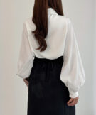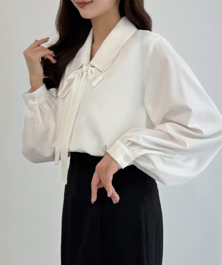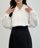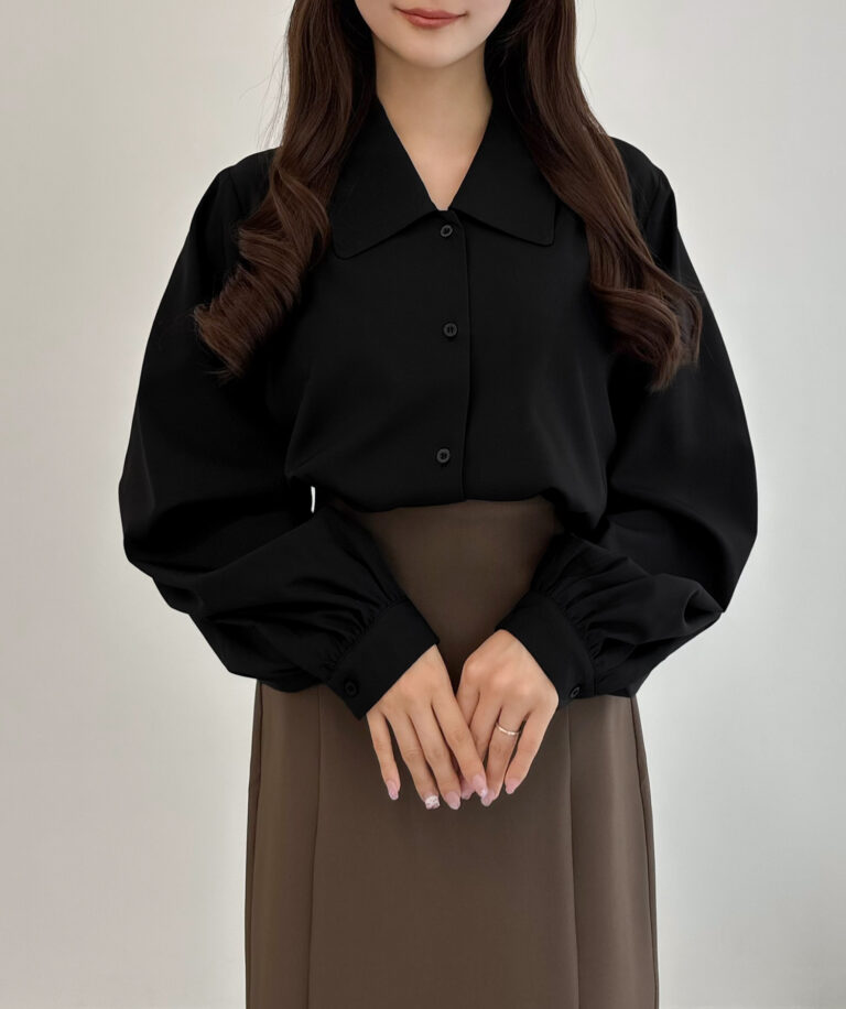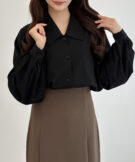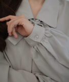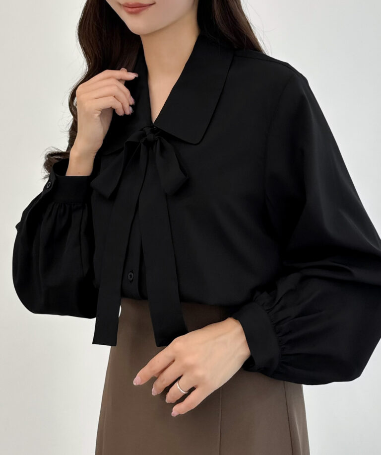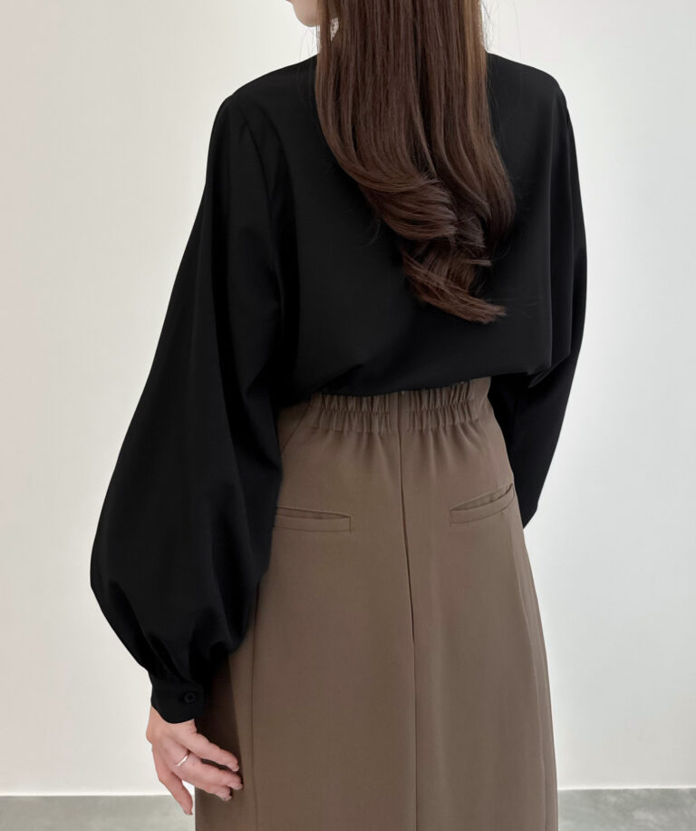 袖口はふわっと膨らんだスリーブデザインで女性らしく、