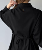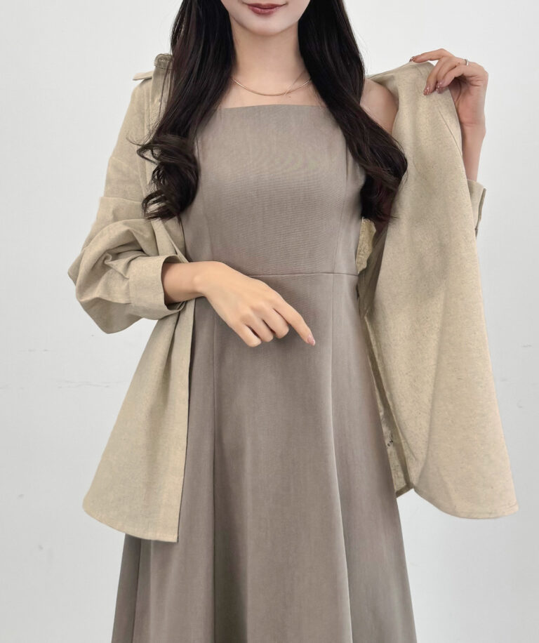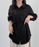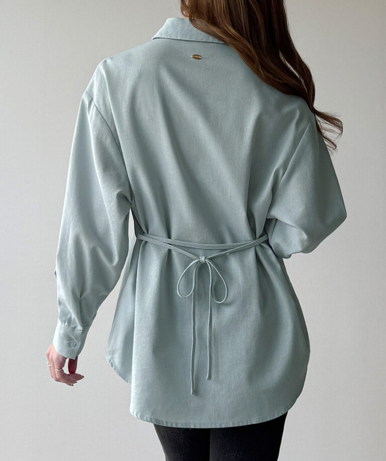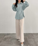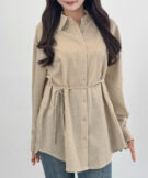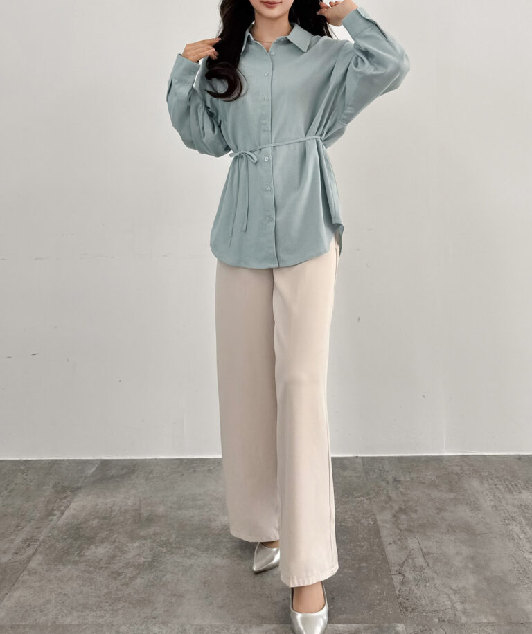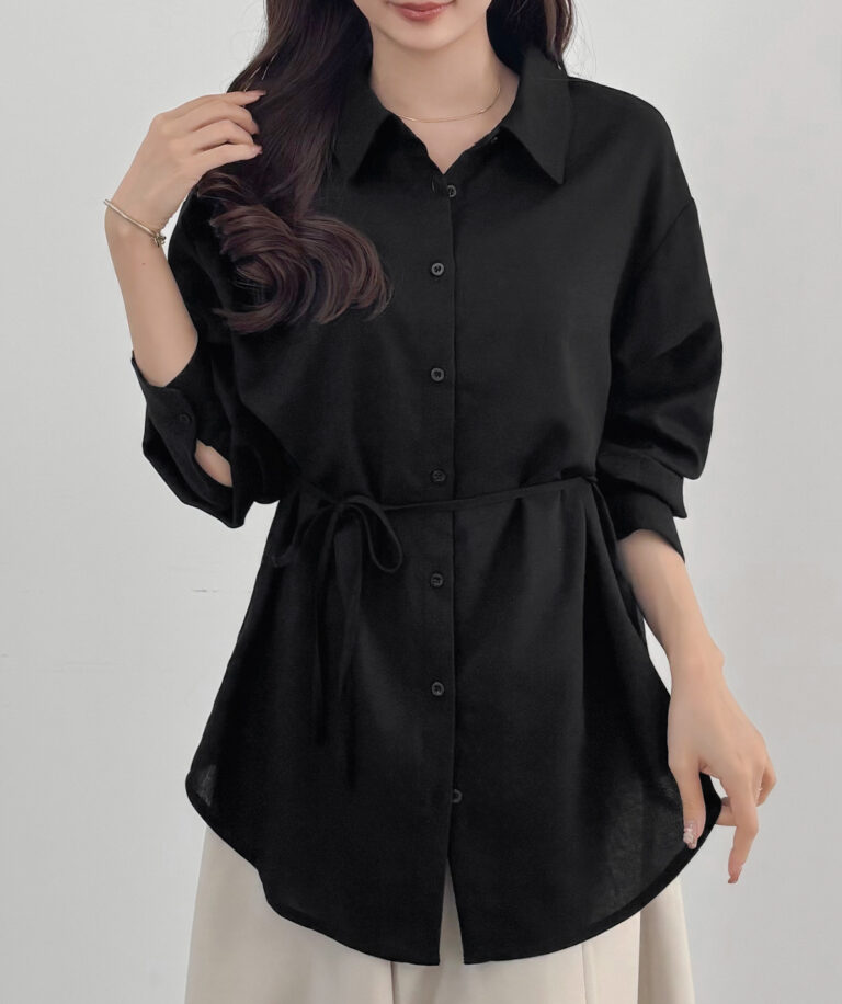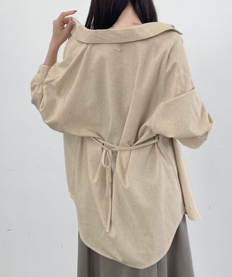 スタイル綺麗見せが叶ベルト付きうリネン混シャツ。