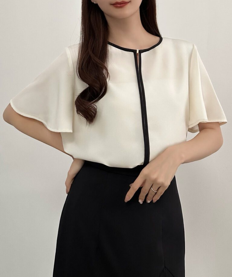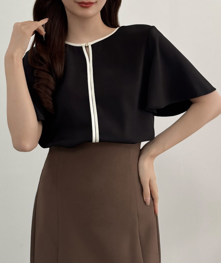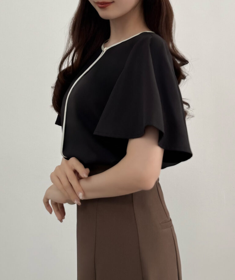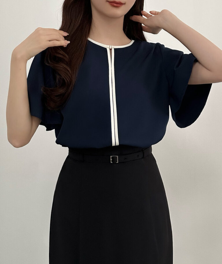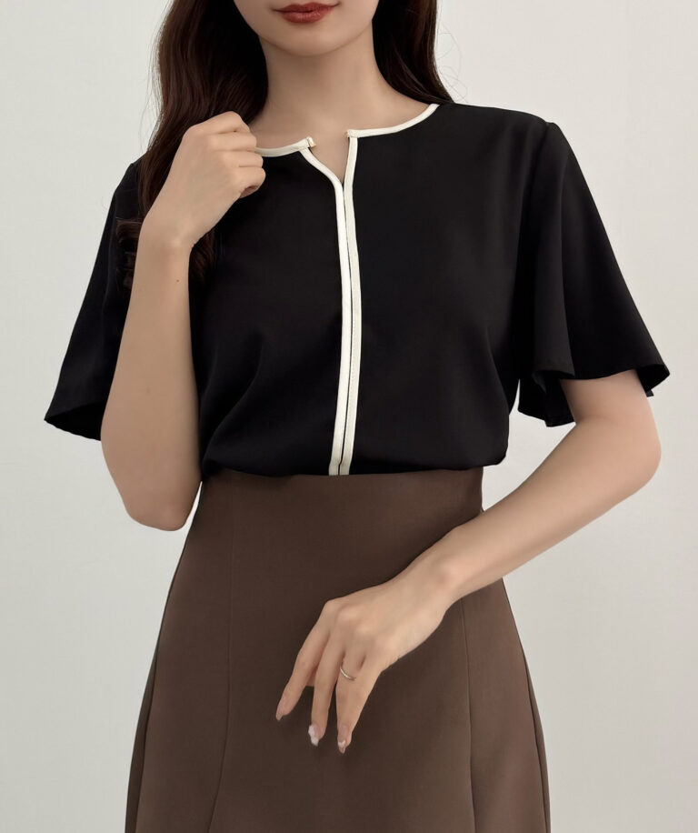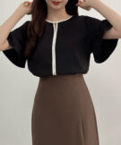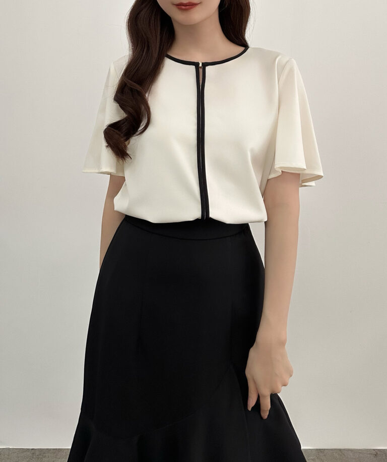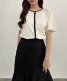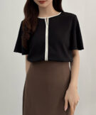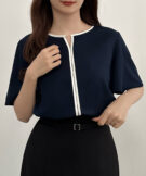 ポイントは襟ぐり・フロントに施した配色デザイン♡
