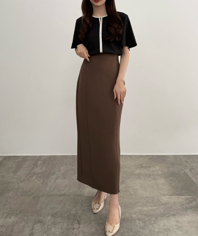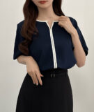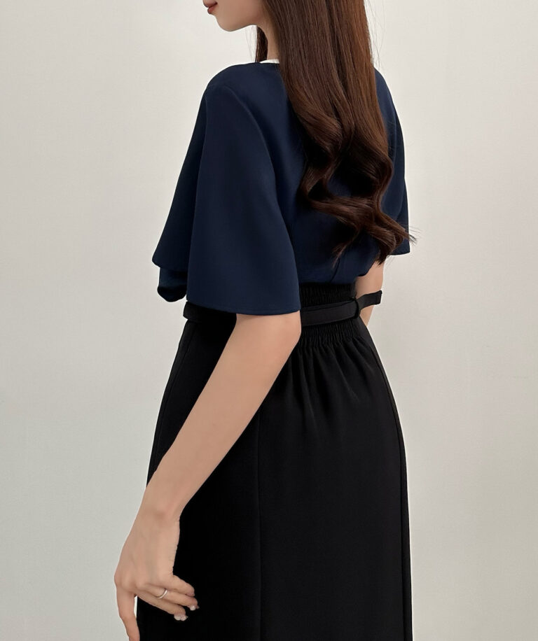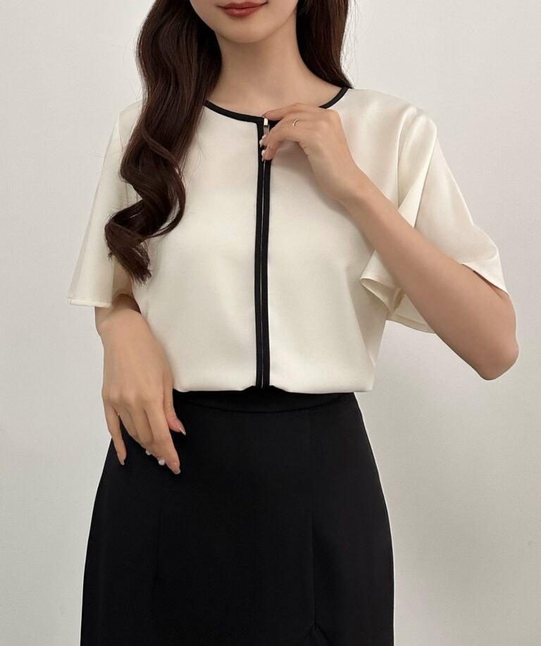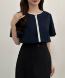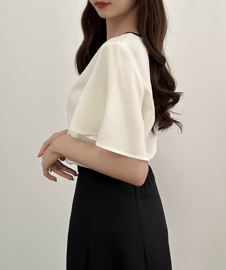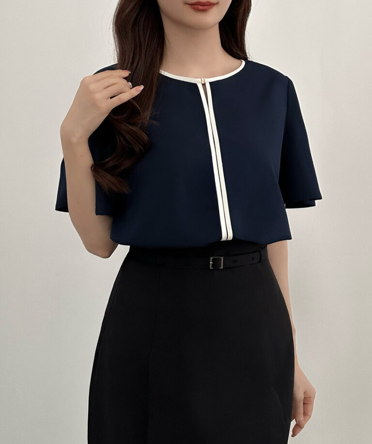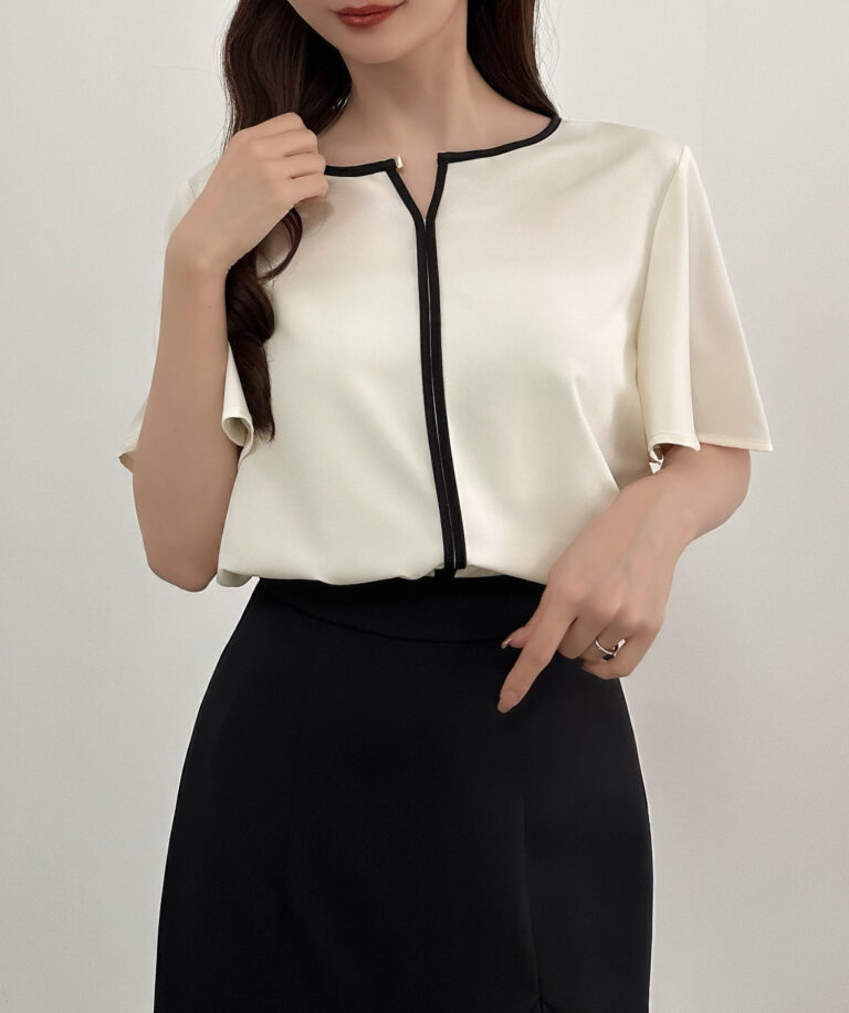 ポイントは襟ぐり・フロントに施した配色デザイン♡