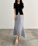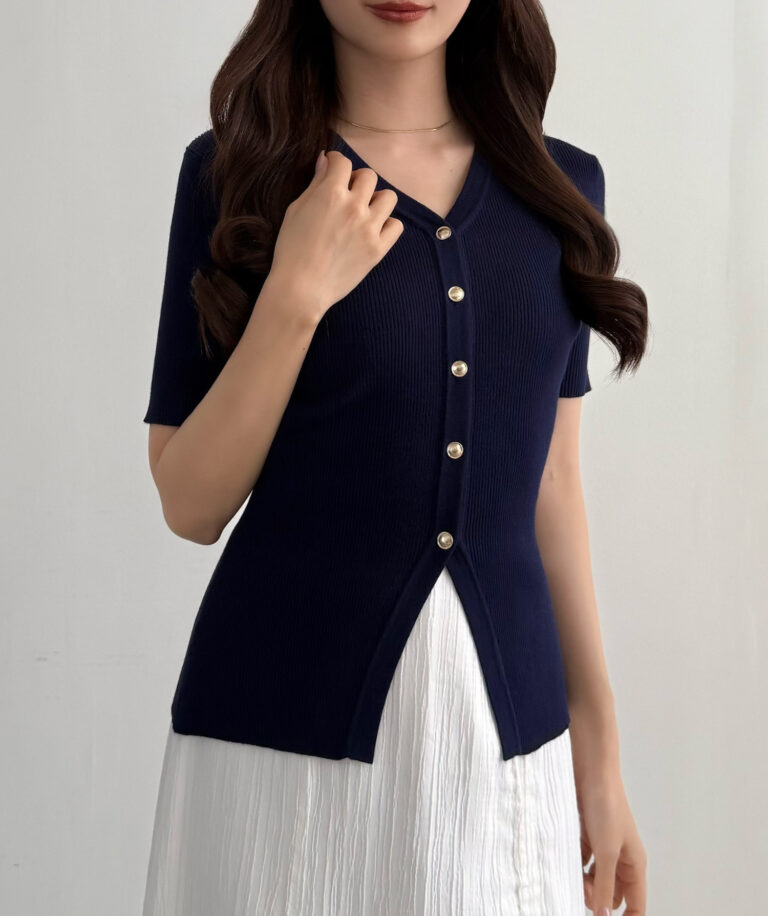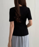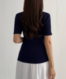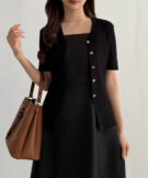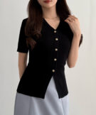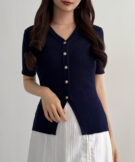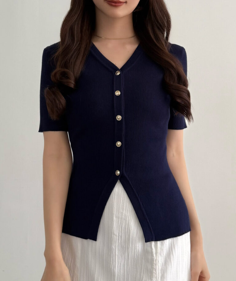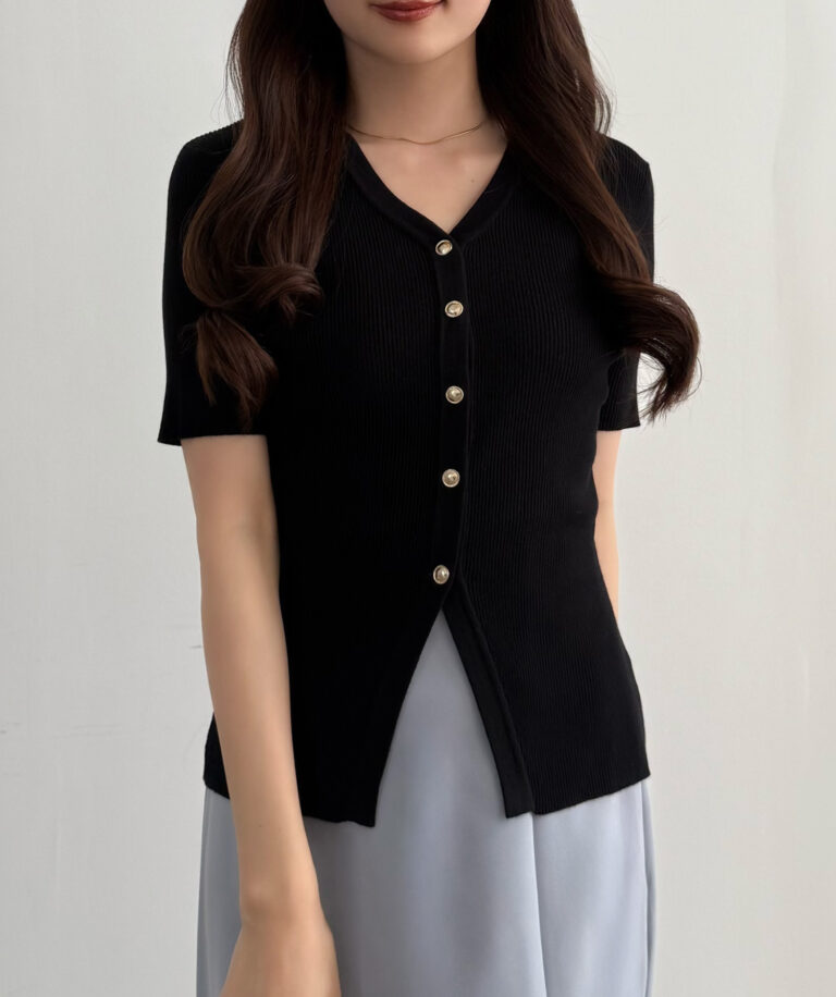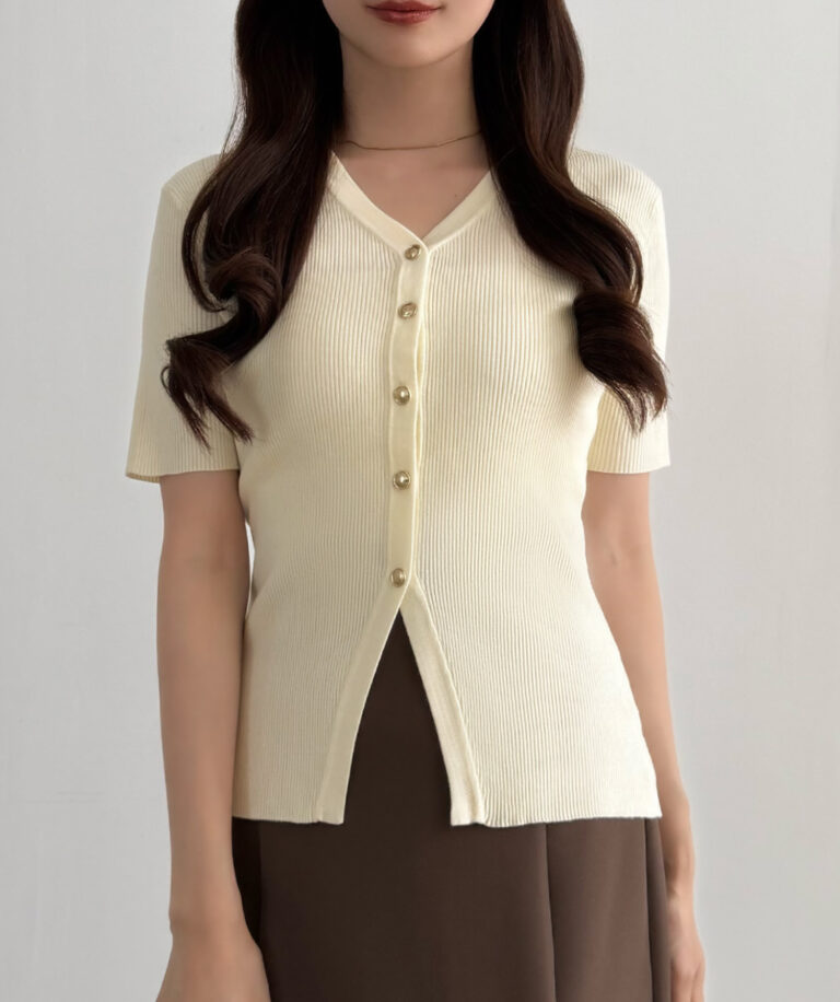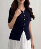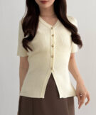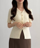 【113】ゴールドボタン半袖リブニットカーディガン