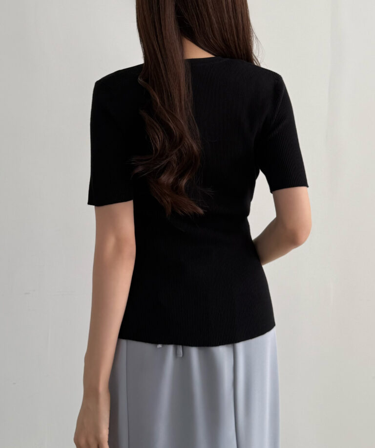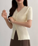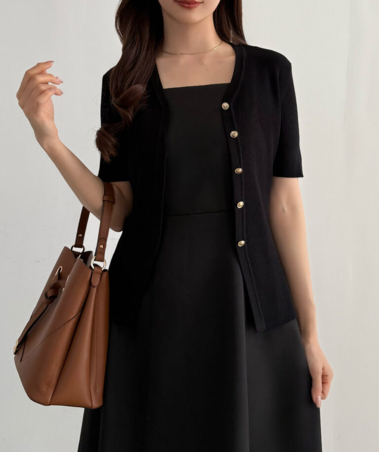 上品なアクセントになってくれる半袖リブカーディガン。