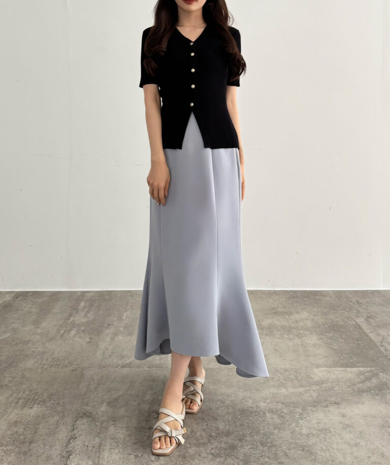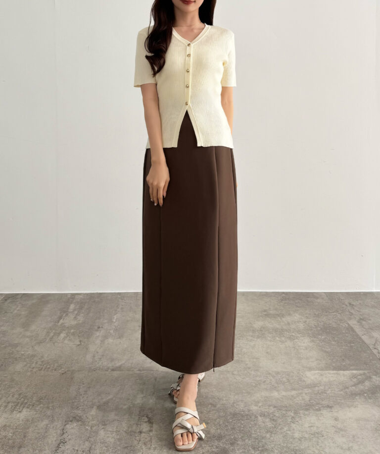 また、Vネック&裾スリットデザインで抜け感のある印象になること間違いなし。